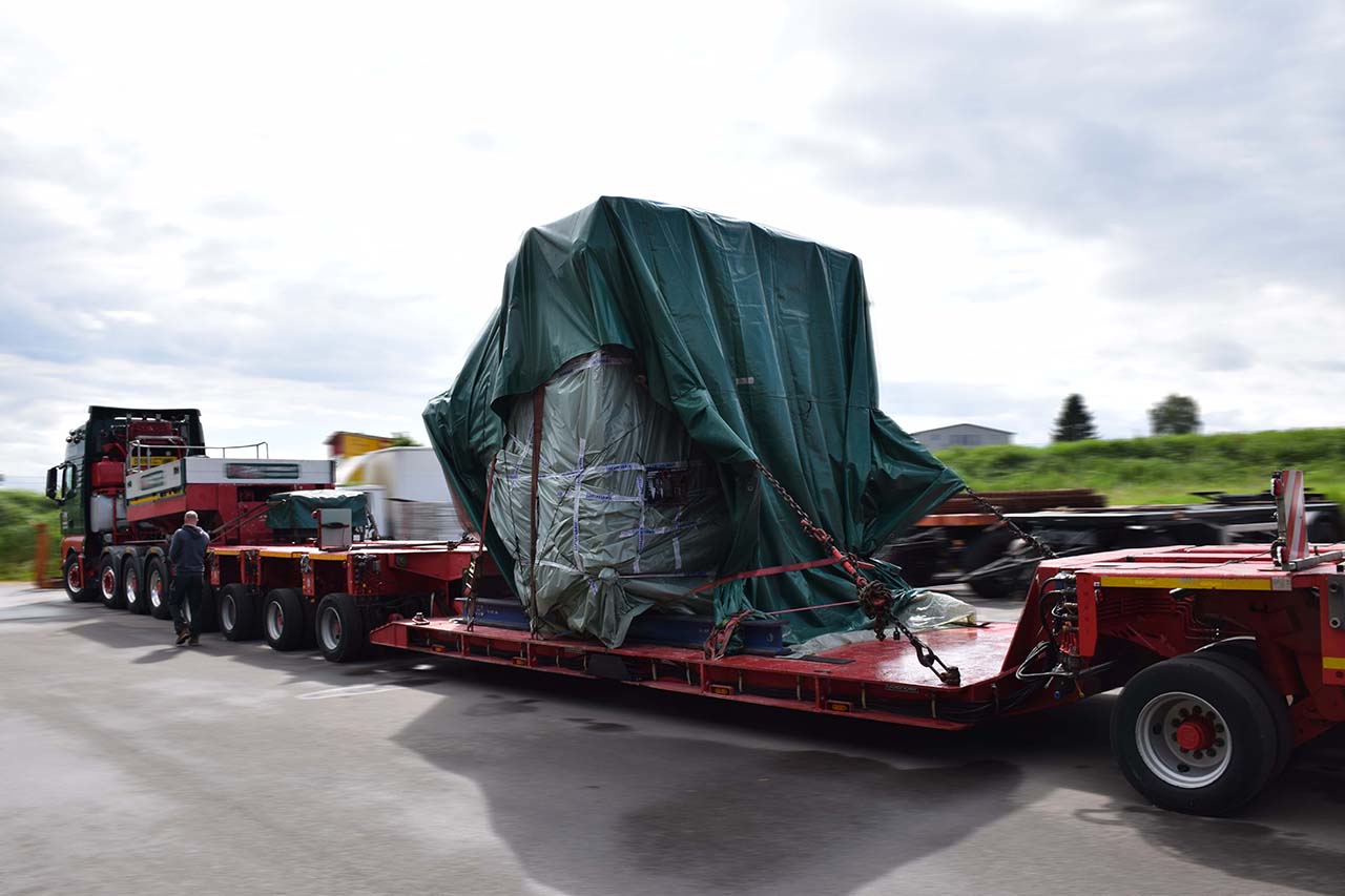 Como empreiteiro geral, as máquinas fiss são também o contacto para o transporte de fábricas de fundição inteiras. Os transportes de máquinas envolvem exigências particularmente elevadas e uma grande quantidade de planeamento individual. A sequência do projecto foi planeada de acordo com as exigências dadas, de modo a que todos os degraus se enredassem precisamente como uma roda dentada.