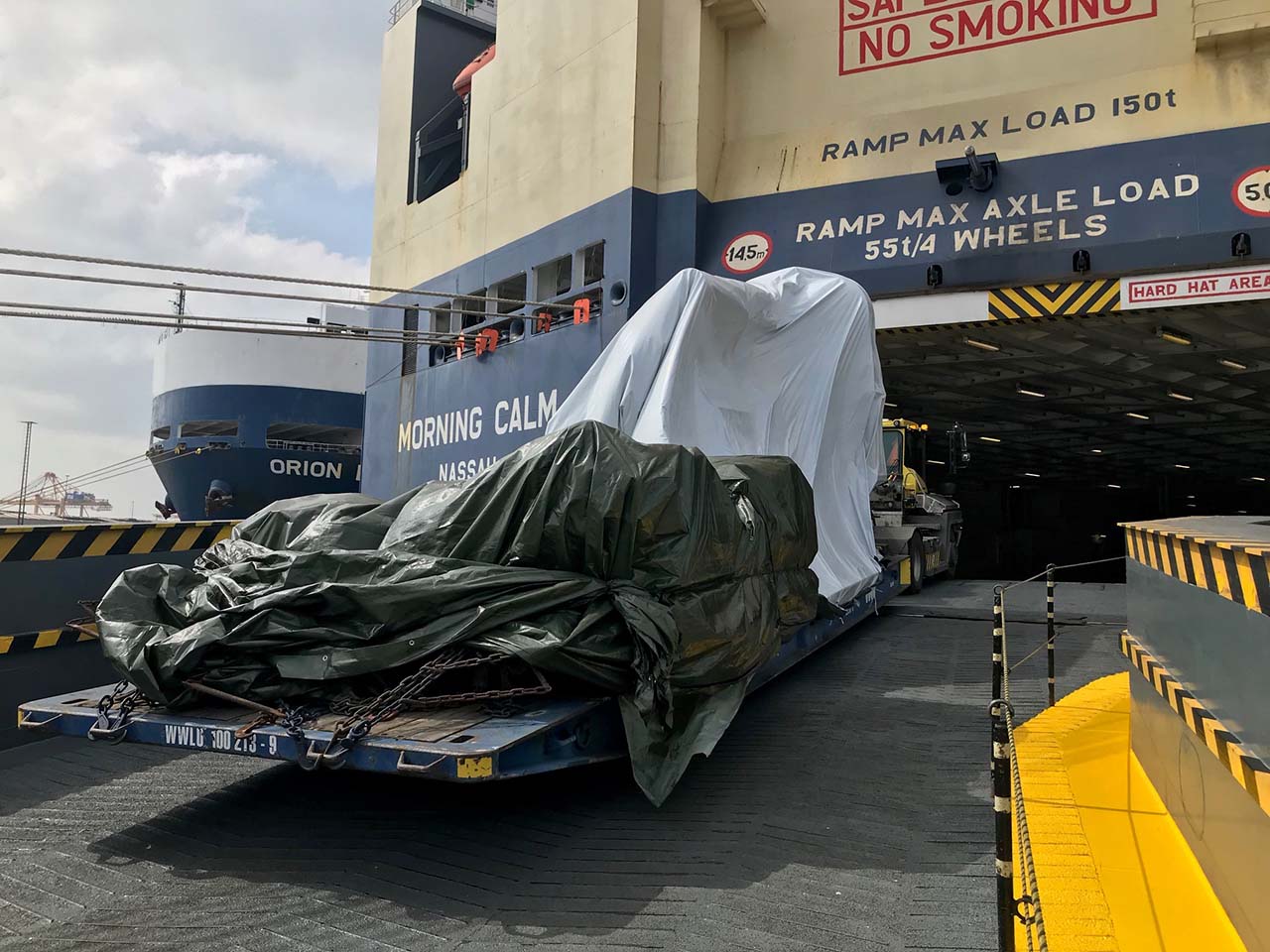 O transporte dos componentes pesados apresentou mais uma vez as máquinas fiss com uma verdadeira tarefa no destino. Afinal, a parte mais pesada pesava 65 toneladas e na Coreia e no Vietname aplicam-se regulamentos diferentes aos transportes rodoviários do que na Alemanha.