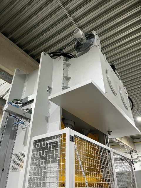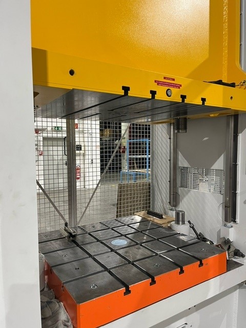 Força nominal finamente ajustável de 160 a 800 kN Amortecimento do impacto de corte na parte inferior, até 15 mm antes do ponto morto inferior. Ajustável entre 100 mm e 300 mm do cilindro acima do tampo da mesa Carga excêntrica apenas em conjunto com a compensação paralela hidráulica