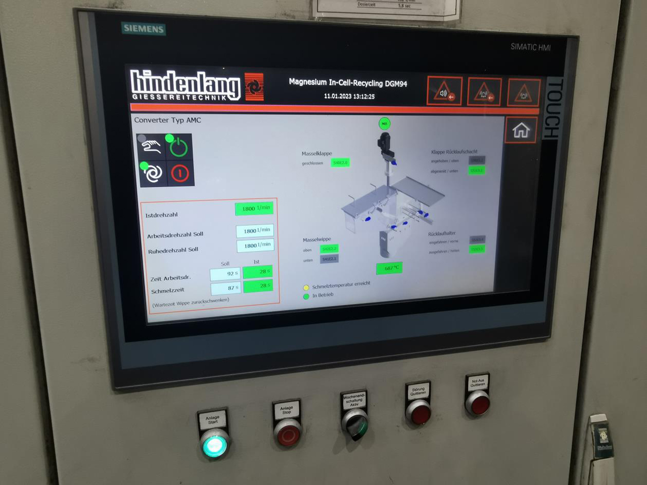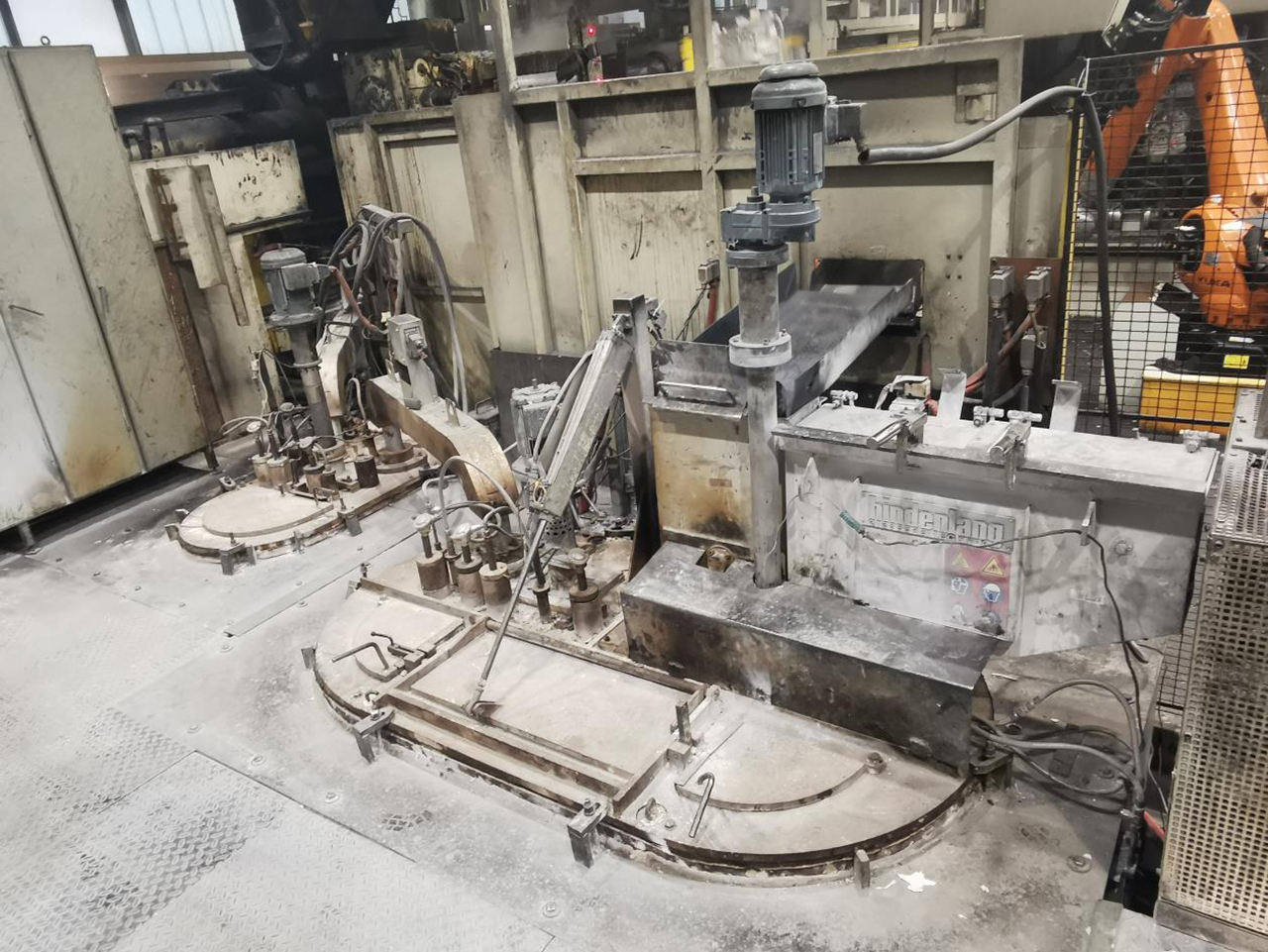 Forno através do conversor. O magnésio líquido é alimentado para o forno de fundição por um sistema de transferência.