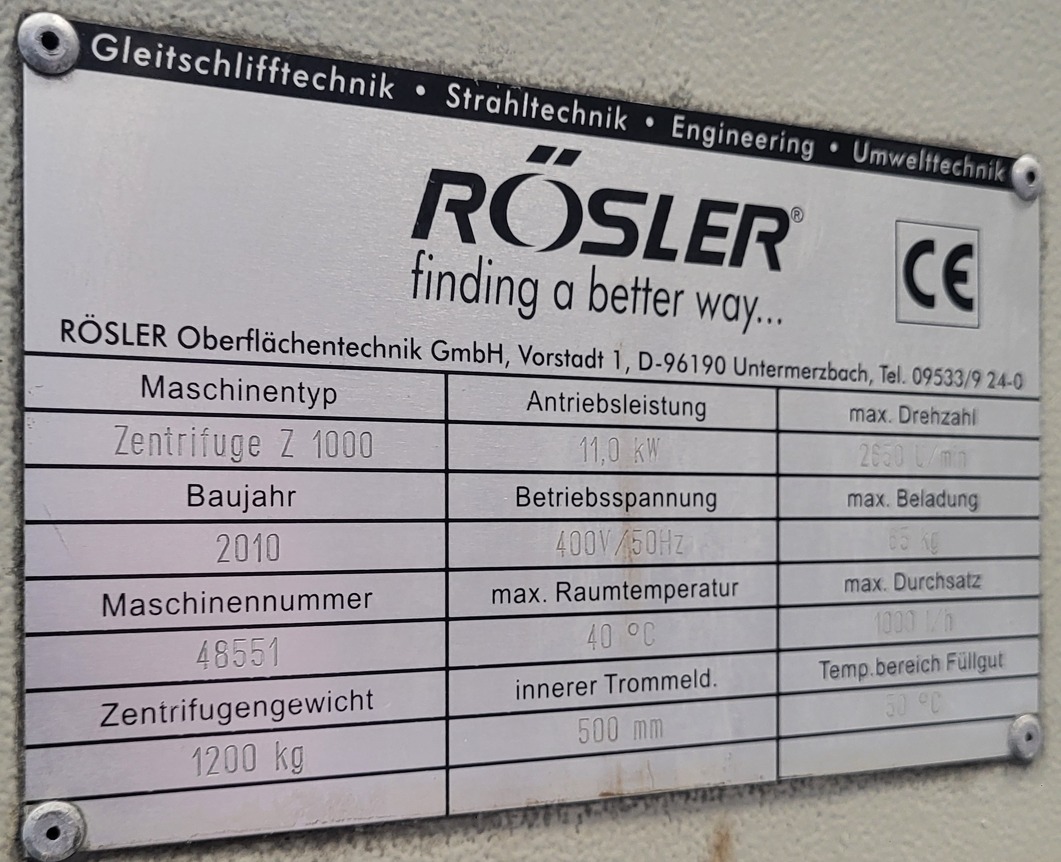 Rösler Z800 centrifugadora GA2235, utilizada