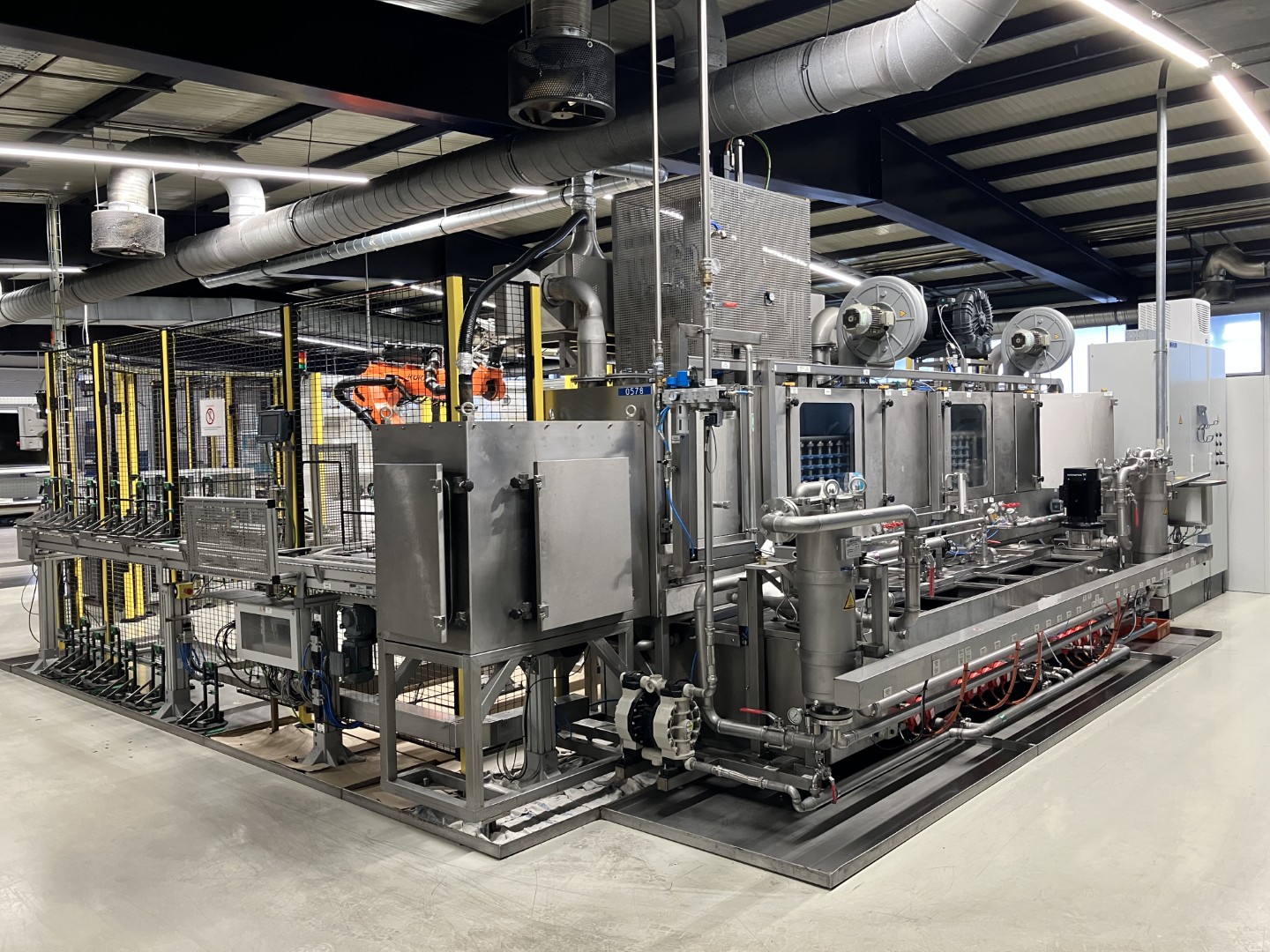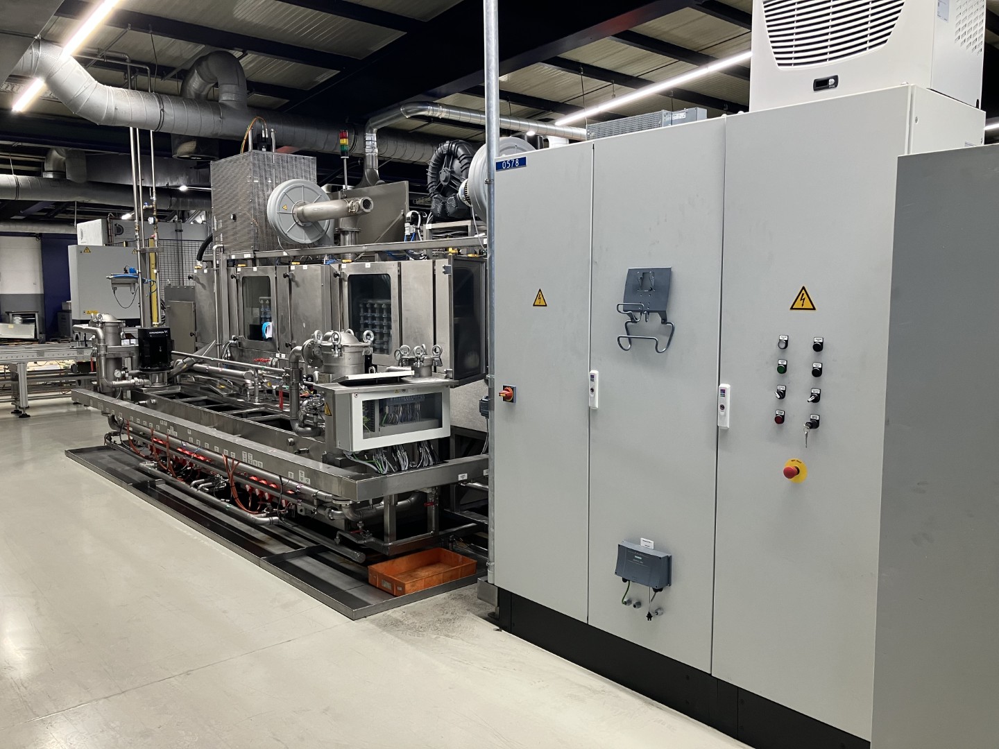 Sistema de limpeza contínua S 60229/2 Limpeza a alta pressão - limpeza - enxaguamento - secagem - arrefecimento Com sistema de circulação de transporte de mercadorias Modelo da máquina: totalmente em aço inoxidável